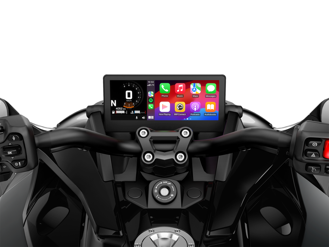 Jedes Element des leistungsstarken Spyder F3 ist mit fortschrittlicher Technologie ausgelegt – vom 26 cm-Touchscreen mit Kompatibilität zu Apple CarPlay bis hin zu integrierten Lenkradsteuerungen, LED-Scheinwerfern, optionaler Rückfahrkamera und digitalem Diebstahlsicherungssystem.