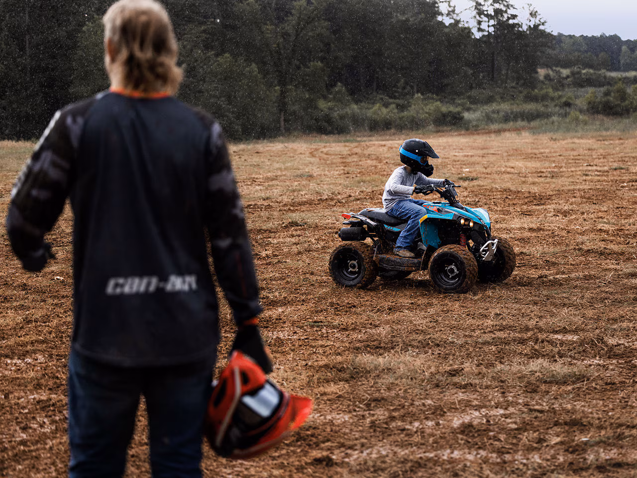 Das Can-Am Produktangebot für Jugendliche macht es leicht, das Fahren zu lieben. Mit ihrem Viertaktmotor, dem stufenlosem Automatikgetriebe, dem Geschwindigkeitsbegrenzer und der elektronischen Kraftstoffeinspritzung (EFI) sind diese Fahrzeuge auf dem Trail genauso gut unterwegs wie alle unsere ATVs.